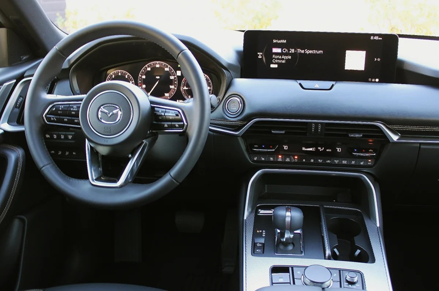 El Mazda CX-90 del 2026 representa la filosofía opuesta a Tesla: menos pantallas táctiles durante el manejo, más controles físicos intuitivos, y un sistema de info-entretenimiento controlado principalmente con una perilla central que minimiza las distracciones al volante.