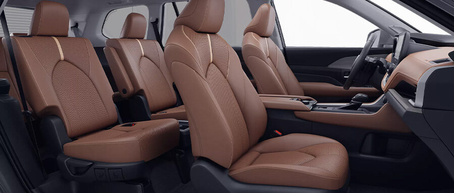 El Toyota Grand Highlander del 2026 ofrece una cabina espaciosa y bien distribuida para familias numerosas, con tres filas donde la tercera es usable por adultos y adolescentes gracias a su diseño profundo.