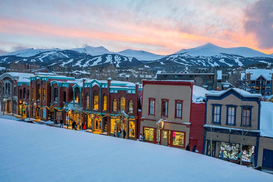 Breckenridge, en Colorado, EE.UU., ofrece greens largas en Peak 9 y áreas dedicadas con terrenos suaves. Sus escuelas como Breck Ski cuestan $250 USD por 5 días. Forfait $800 USD semanal, accesible desde Denver ($100 USD en shuttle). Es un resort americano con terreno extenso para principiantes.