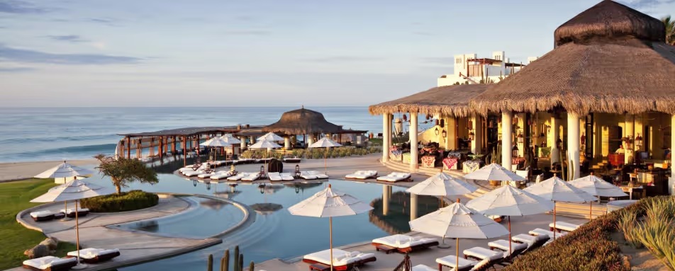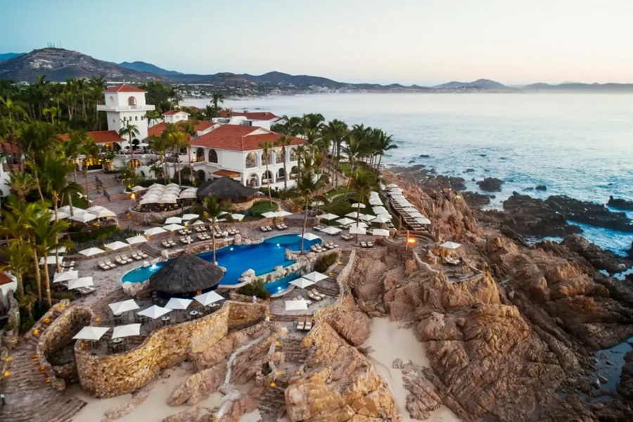 Con 172 habitaciones, es lujoso y privado. Costo aproximado: $1.800–$3.500 USD por noche (todo incluido opcional). Es el resort de Los Cabos con las vistas al mar más dramáticas y lujosas.