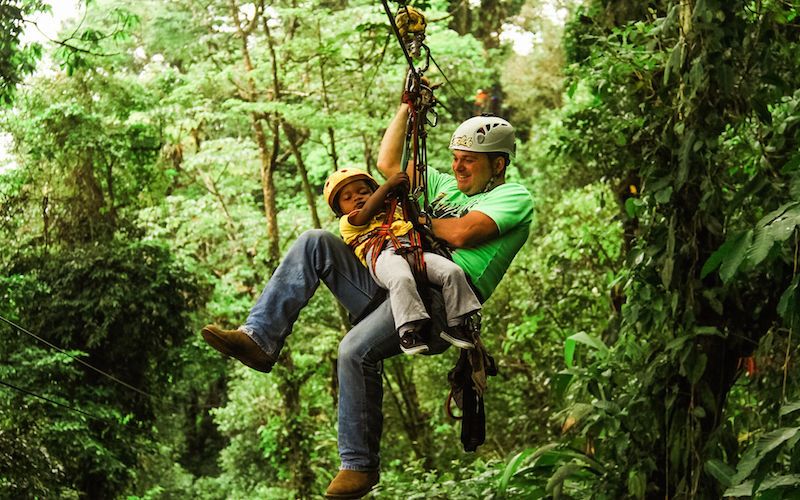 Pueden hacer zip-lining a través de la selva, observar perezosos, monos y tucanes en su hábitat natural, visitar volcanes, relajarse en playas tranquilas o explorar puentes colgantes en el bosque nuboso. Hay muchos eco-lodges y resorts familiares que ofrecen tours y actividades pensadas para los más pequeños, garantizando que la aventura sea emocionante y segura para todos.