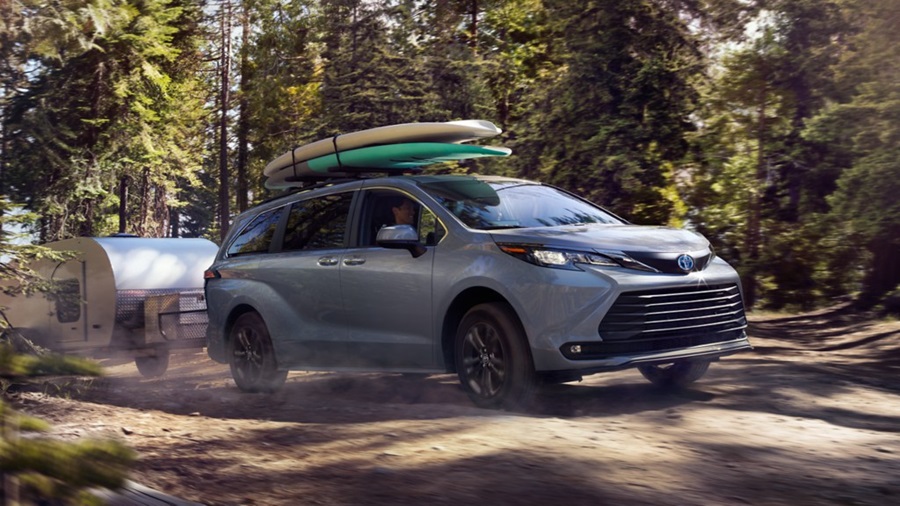 El tren motriz híbrido del Sienna combina un motor de 2,5 litros de cuatro cilindros y dos motores eléctricos para un total de 245 caballos de fuerza. La tracción delantera es de serie, mientras que la tracción total está disponible.