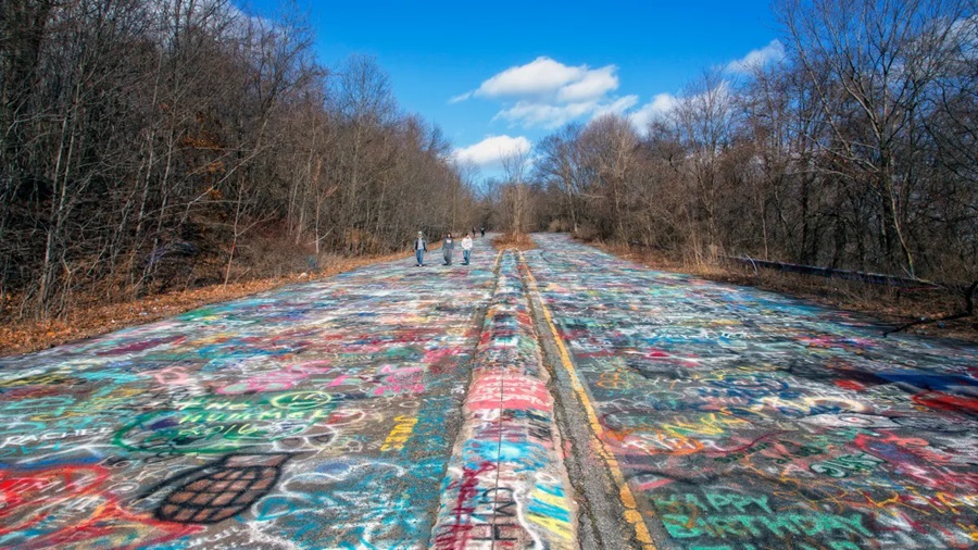La carretera principal que atraviesa Centralia, marcada por fisuras y humo que emana del suelo, ofrece una imagen surrealista de un lugar que una vez fue un hogar vibrante.