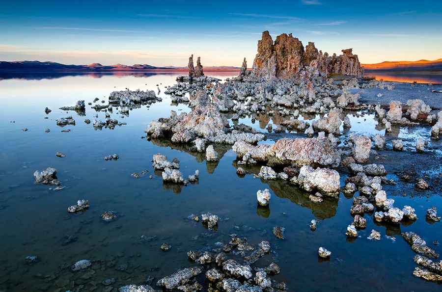 Las tufas (torres de carbonato) crean un paisaje alienígena. Es el lago más tóxico de EE.UU. para contacto humano.