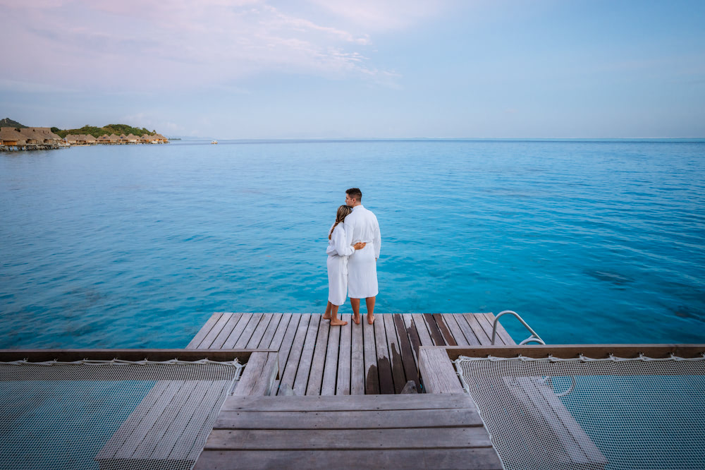 Costo aproximado: $5.000–$10.000 USD por pareja (villa overwater + todo incluido). Es el archipiélago con las vistas al océano más privadas y románticas.