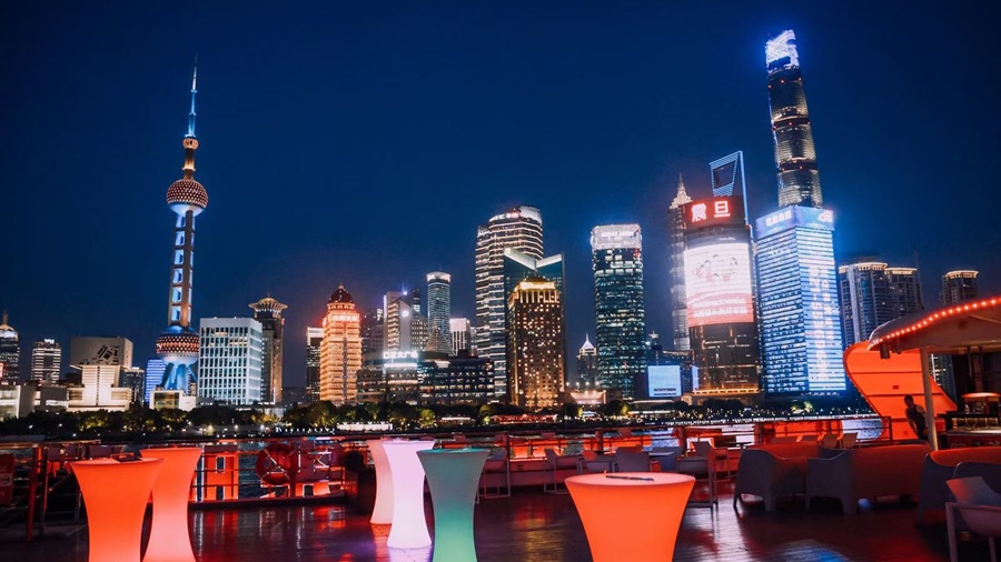 Aunque no es un rascacielos en sí, las terrazas y bares en azoteas frente al río Huangpu ofrecen vistas de vértigo de todo el skyline iluminado.