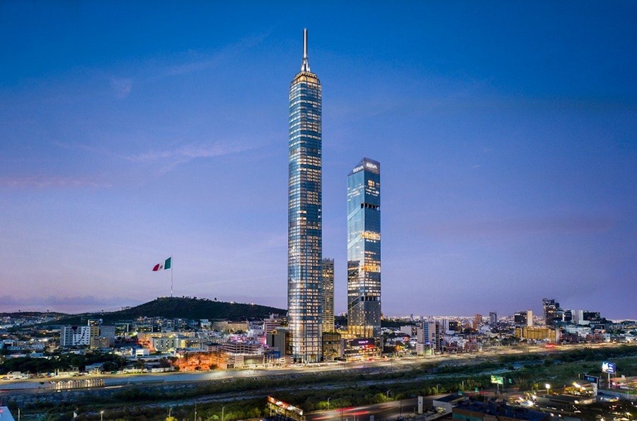A 338 metros de altura en el corazón de Monterrey, este mirador de cristal debutará en el primer trimestre de 2026 con un piso panorámico de 1.200 m² que permite ver el desierto chihuahuense y las montañas Sierra Madre a 360°.