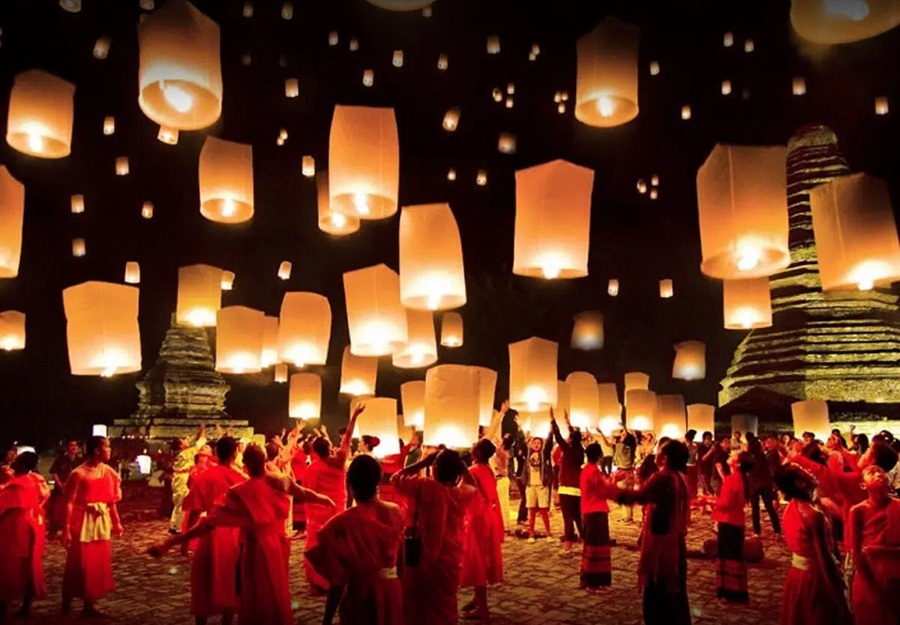 Chiang Mai es el epicentro del Yi Peng Lantern Festival (noviembre), donde decenas de miles de linternas khom loi flotan simultáneamente al cielo al ritmo de oraciones budistas y música tradicional. El río Ping y templos como Wat Phan Tao se iluminan con linternas flotantes, creando un espectáculo mágico.