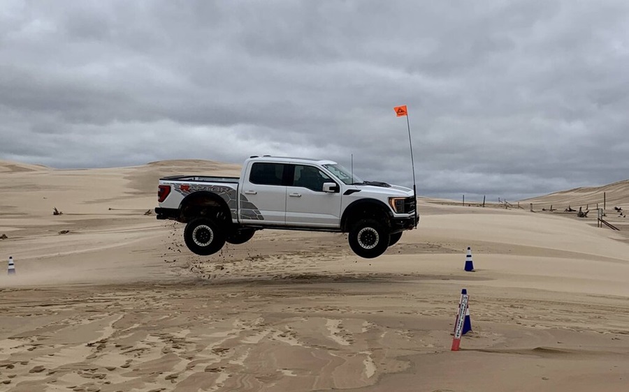 La Ford F-150 Raptor está diseñada para velocidad y agilidad en las dunas. Su motor EcoBoost V6 biturbo combinado con una suspensión FOX de 3.0 pulgadas absorbe impactos incluso en terrenos irregulares o saltos extremos.