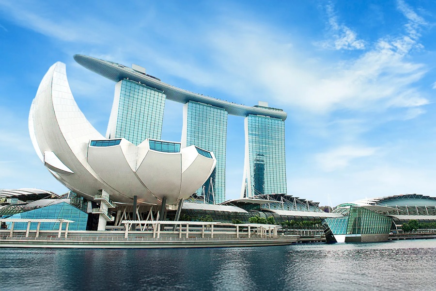 Con su forma de flor de loto, el ArtScience Museum combina arte, ciencia y tecnología.