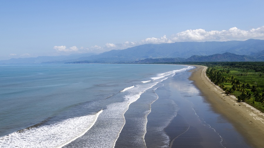 Por qué destaca: contraste entre selva alta y playa surfista.