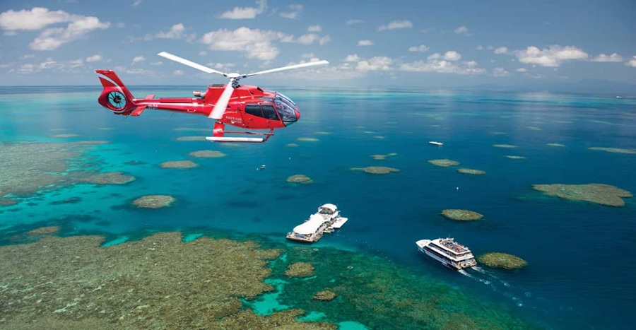 Australia ofrece tours privados sobre la Gran Barrera de Coral (desde Cairns) con vistas a arrecifes y cayos, o sobre el Outback con formaciones rocosas y Uluru. Operadores como Helispirit permiten aterrizajes en islas privadas. Duración típica: 45–90 minutos.