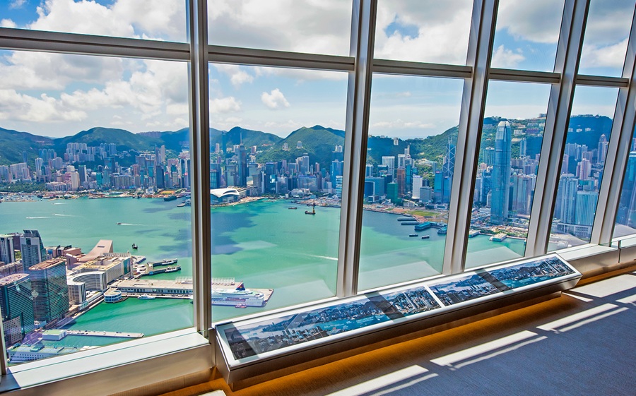 Situado en el piso 100 de la International Commerce Centre (ICC), Sky100 ofrece una vista de 360 grados de la ciudad y del puerto Victoria.