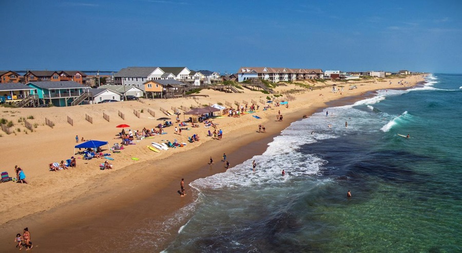 • Entretenimiento y Familias: Las playas son amplias y menos concurridas, perfectas para construir castillos de arena, volar cometas o simplemente correr libremente. Las actividades incluyen escalar faros históricos (como Cape Hatteras Lighthouse), visitar el Wright Brothers National Memorial (donde voló el primer avión), buscar cangrejos fantasma por la noche, o incluso avistar los caballos salvajes de Corolla. El surf es popular, pero también hay zonas tranquilas para nadar.