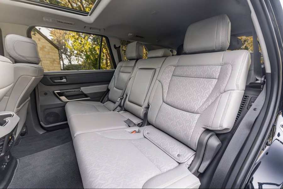 El Sequoia Limited del 2026 llega con una cabina amplia y bien equipada para ocho pasajeros, con asientos delanteros calefactados y ventilados de ajuste eléctrico, segunda fila con capitán chairs opcional, y una tercera fila que, como novedad para este año, se pliega eléctricamente desde el maletero, eliminando el esfuerzo que antes requería esa maniobra.
